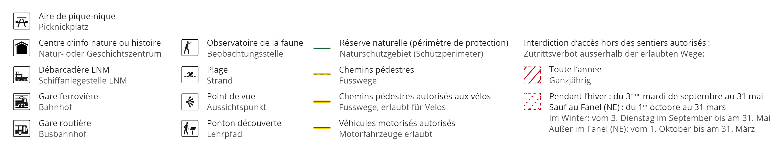 Zones lacustres règlementées sur la rive sud du lac de Neuchâtel